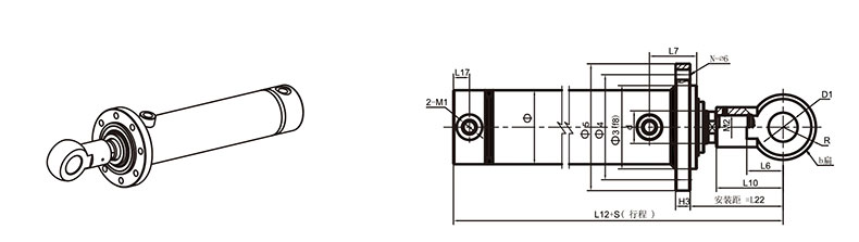 活塞桿端為外螺紋桿頭耳環連接