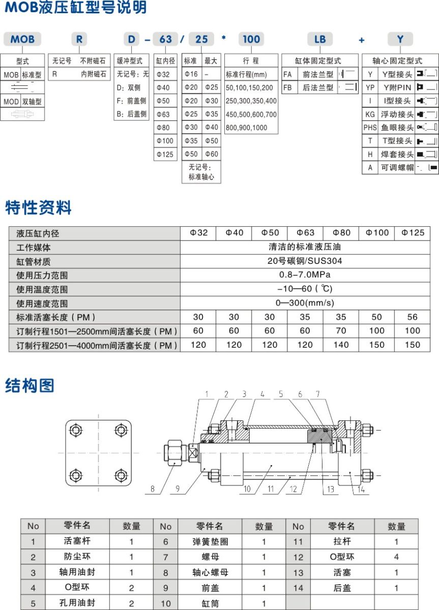 MOB前法蘭拉桿模具油缸 外形安裝尺寸圖