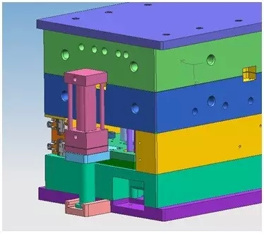 定模抽芯用油缸驅動,大大簡化模具結構,降低成本;但需注意動作順序的控制和滑塊鎖緊,以免動作錯亂損壞模具或油缸鎖緊力不足而無法封膠,抽芯力不足而抽不動滑塊。